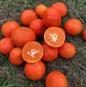 The main tangerine variety I grow is ‘Sunburst’, a particularly brightly colored and intensely flavored variety. The season usually goes from December to early February. Most years, I have enough tangerines from my grove that I sell the fruits at local farmers markets, and people can arrange to pick up large orders of fruit on site at my farm.